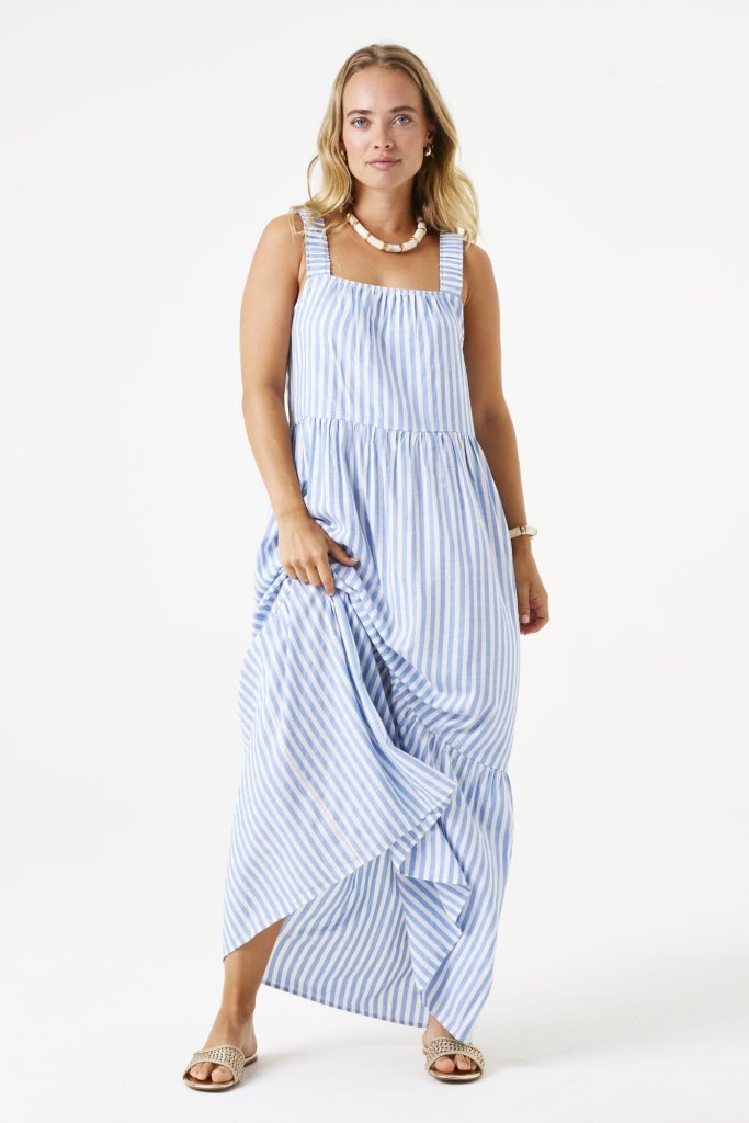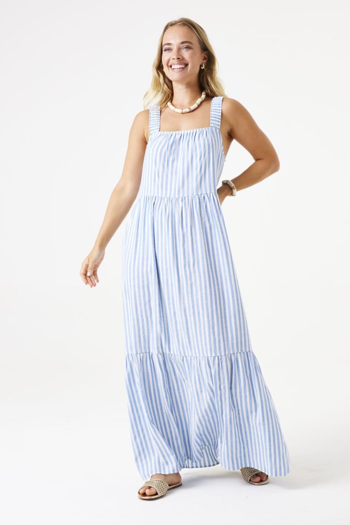GARCIA PRUHOVANÉ ŠATY NA RAMÍNKA - MODROBÍLÉ