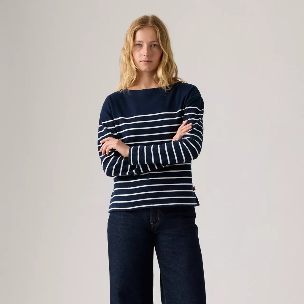 LEVI'S® MAGNOLIA PRUHOVANÝ BAVLNĚNÝ TENKÝ SVETR-NAVY