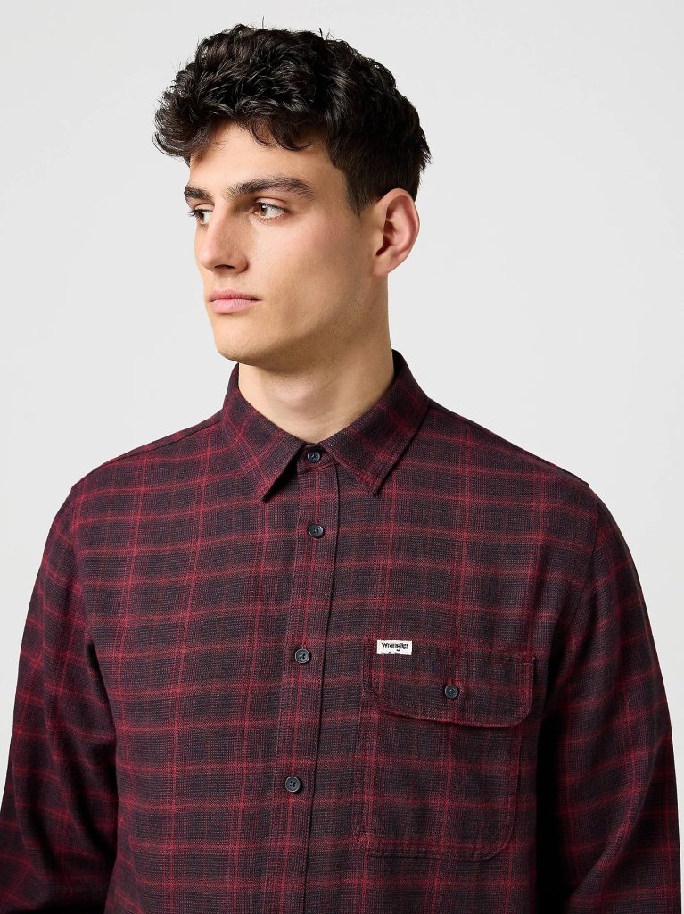 WRANGLER® RELAXED FLANELOVÁ KOŠILE S JEDNOU KAPSOU - VÍNOVÁ KOSTKA